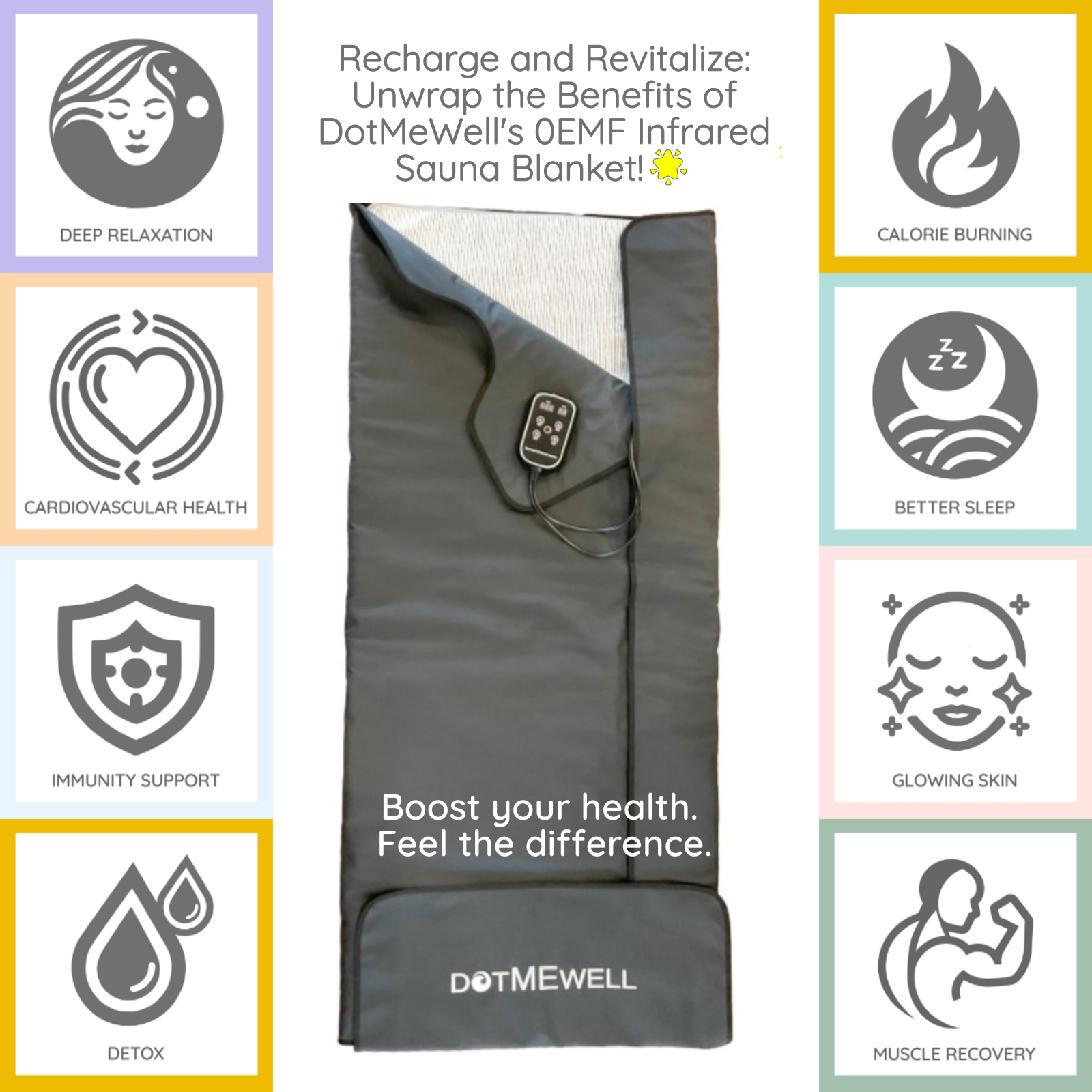 Discover the comprehensive benefits of heat therapy with DotMeWell Infrared Sauna Blanket. Our innovative blanket merges the wisdom of the therapeutic practices of Ayurveda’s Swedana, Japanese Waon therapy, and the Sweat Lodges of the Native Americans, with cutting-edge heating technology. Each tradition uniquely enhances wellness by using heat to promote overall health, DotMeWell Sauna Blankets offer a multi-faceted approach to modern heat therapy.